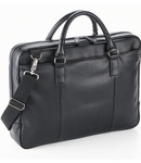 Full grain leather look NuHide® PU. Pinstripe lining.Self fabric carry handles.Adjustable shoulder strap.Full length front zip pocket.Padded laptop pocket compatible up to 15.6".Padded internal iPad®/Tablet compartment.Organiser section.Security zip pocket.Gunmetal fittings.Tear out label.Capacity 9 litres.